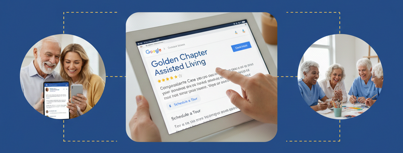 Golden Chapter Marketing is a senior living marketing agency created to bring senior living marketing into 2026, with compassionate, modern systems and simple reporting.